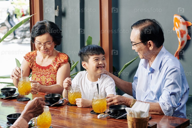 Мальчик наслаждается тем, что проводит время с бабушкой и дедушкой