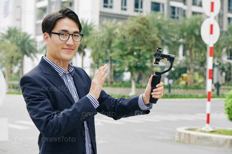 Улыбающийся мужчина с моноподом