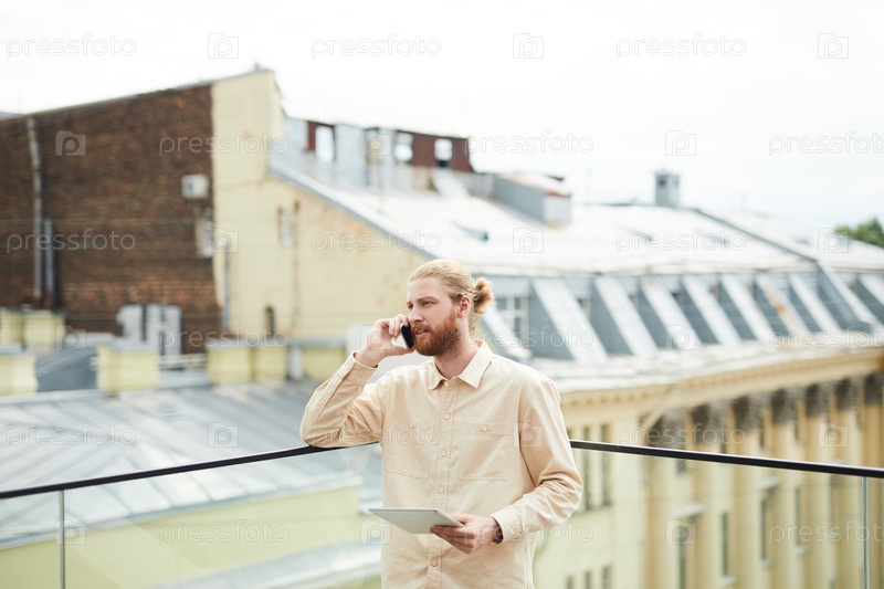 Молодой человек занят на телефоне