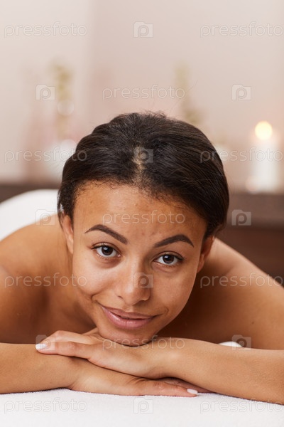 Улыбающаяся молодая женщина наслаждается спа