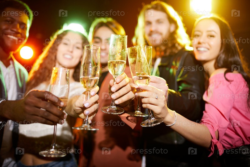 Пить шампанское на вечеринке в ночном клубе