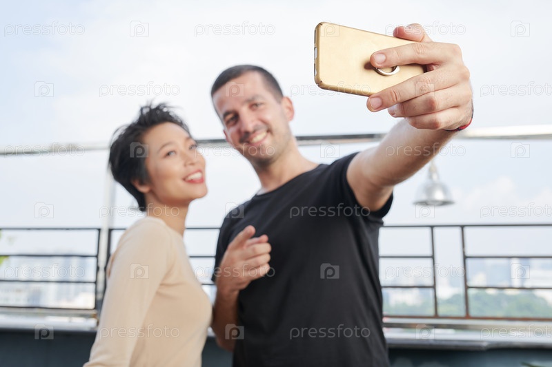 Пара делает селфи на смартфоне