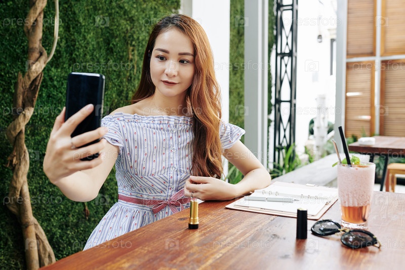 Молодая женщина делает селфи