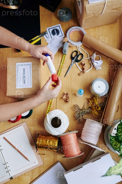 Женщина, упаковывающая подарки и посылки