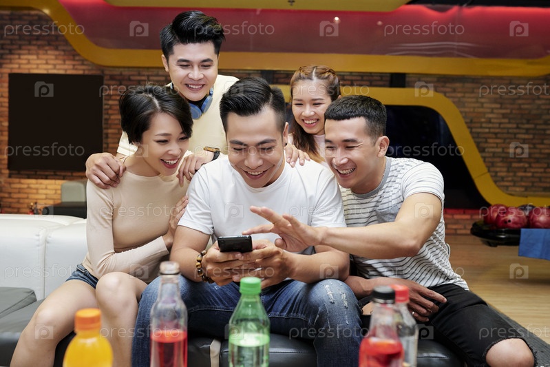 Друзья выбирают фотографию для социальных сетей