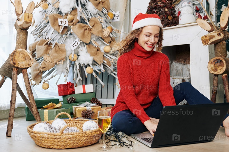 Женщина, отправляющая электронные письма на Рождество