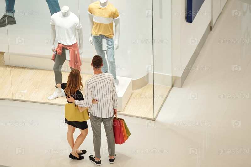 Пара смотрит на витрину магазина