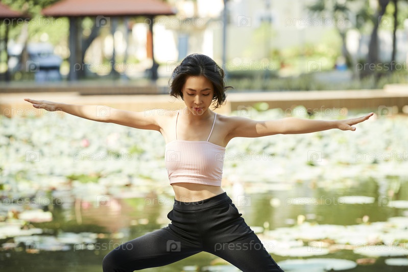 Женщина наслаждается утренней йогой