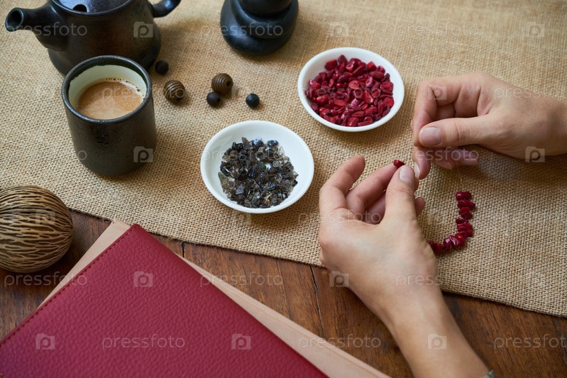 Женщина, делающая каменный браслет