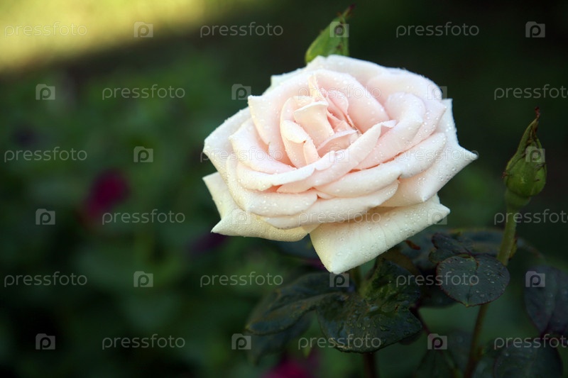 Бледно-розовая роза в саду крупным планом