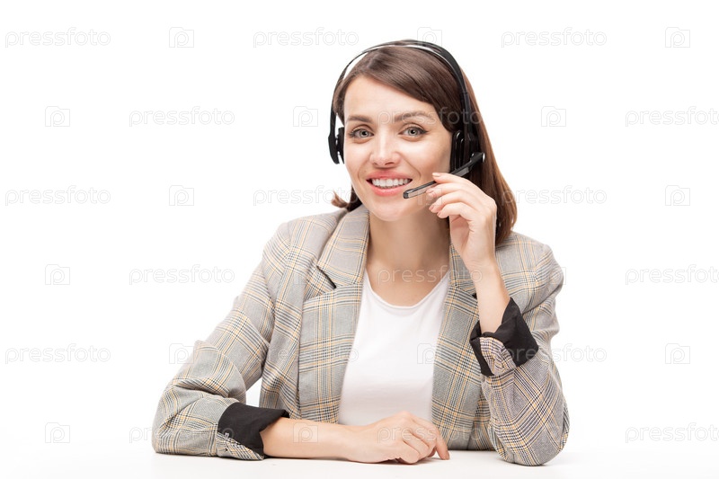 Молодая дружелюбная женщина-оператор горячей линии колл-центра