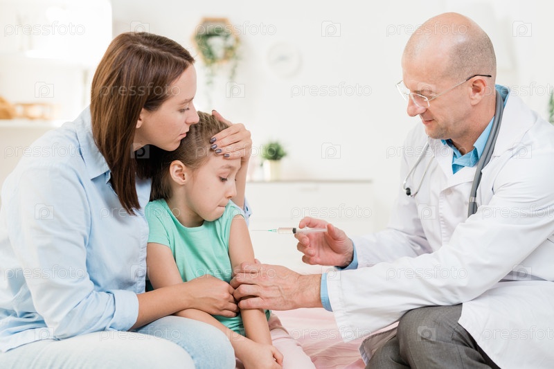 Современный педиатр делает инъекцию маленькой девочке в больнице
