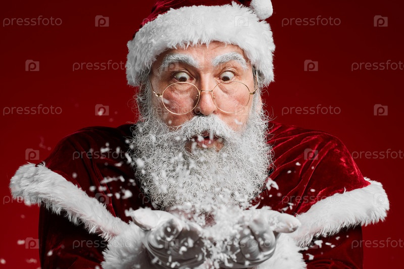 Санта-Клаус, дующий снег