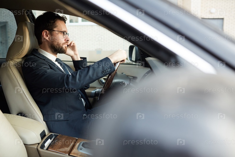 Бизнесмен, сидящий в своей роскошной машине