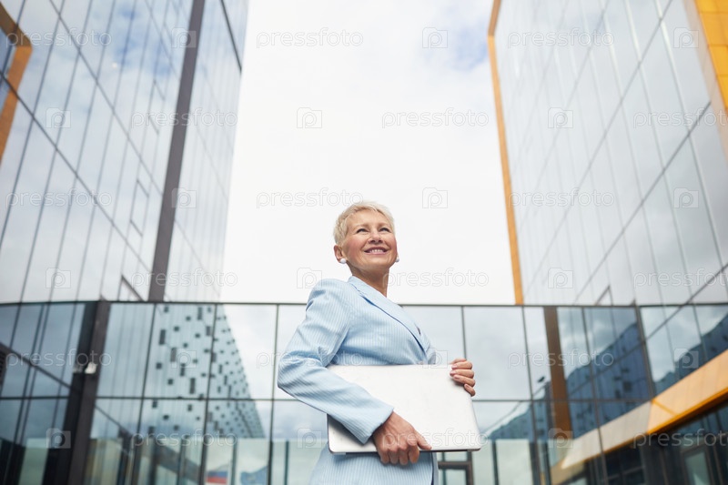 Женщина с ноутбуком в городе