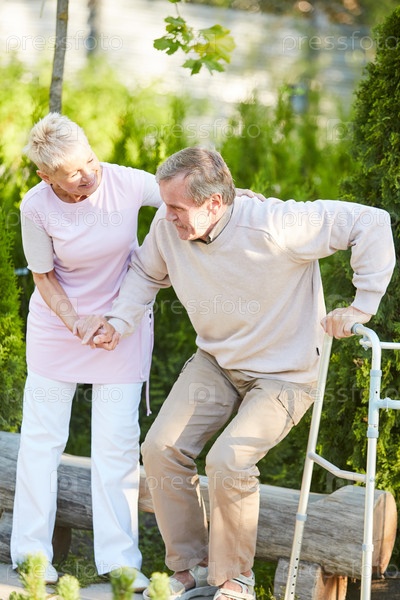 Медсестра помогает старшему пациенту