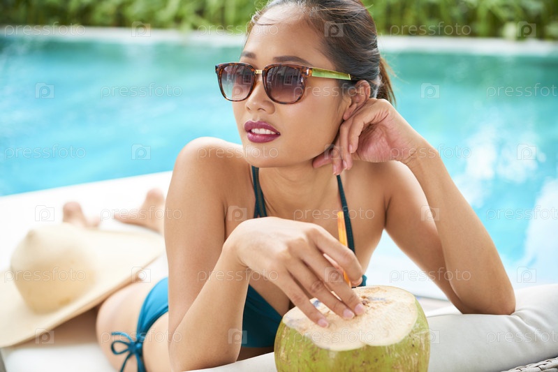Женщина пьет освежающий коктейль