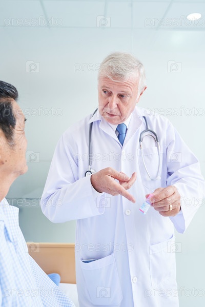 Врач общей практики дает лекарства пожилому пациенту