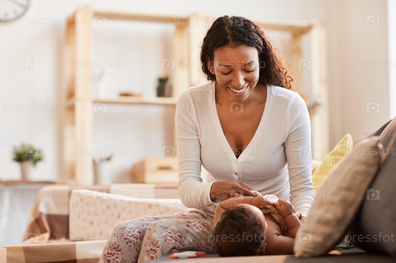 Заботливая молодая мать с ребенком