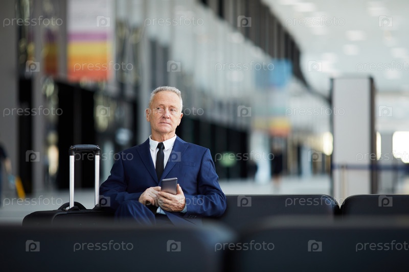 Бизнесмен-старший ждет в аэропорту