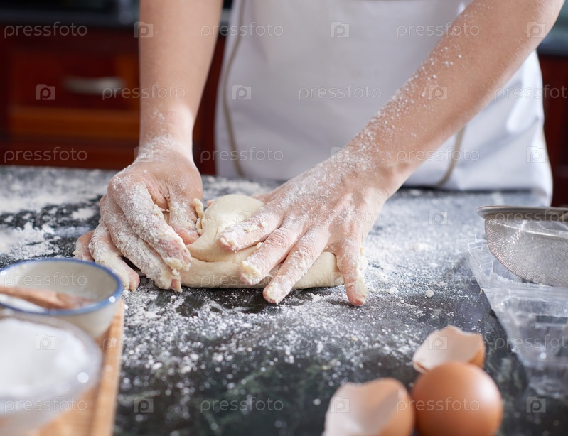 Руки размазывают тесто