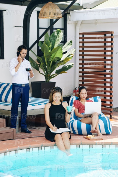 Деловая команда работает во время отпуска