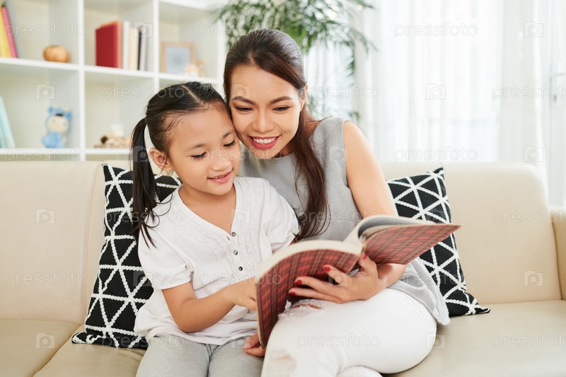 Мать и дочь читают книгу
