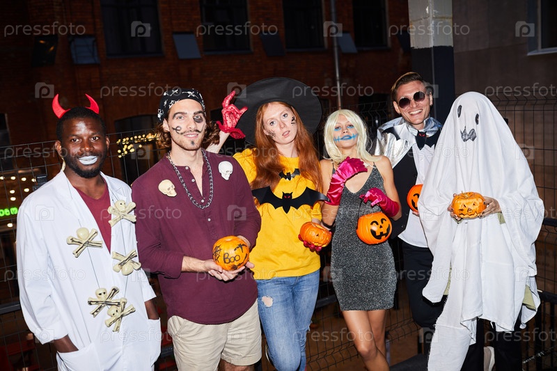 Взрослые, носящие костюмы Хэллоуина в ночном клубе