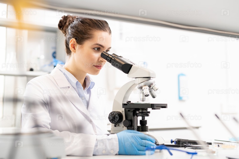 Биолог, наблюдающий за материалом на молекулярном уровне