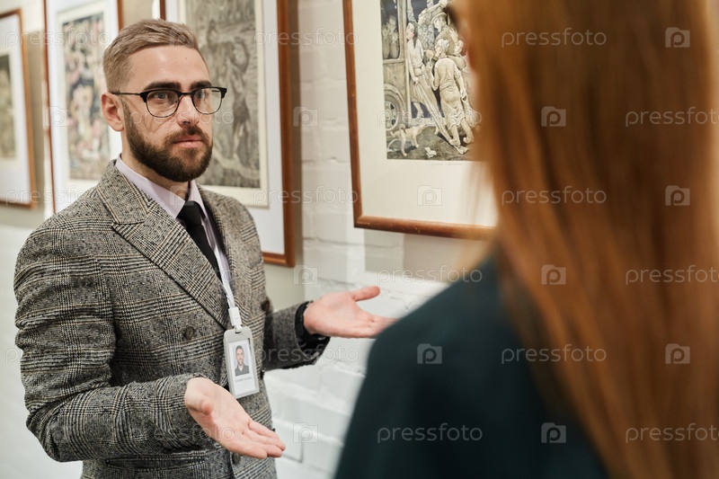Менеджер по искусству с клиентом в галерее