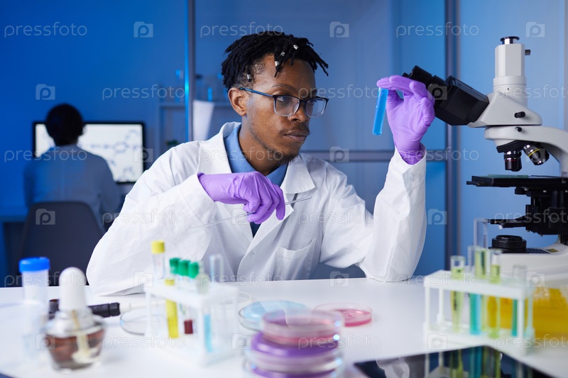 Молодой африканский мужчина работает в лаборатории