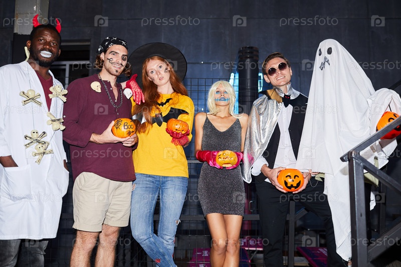 Группа друзей, позирующих на Хэллоуин