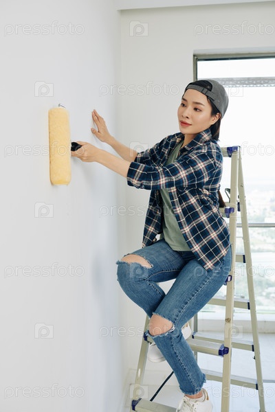 Женщина рисует стену дома