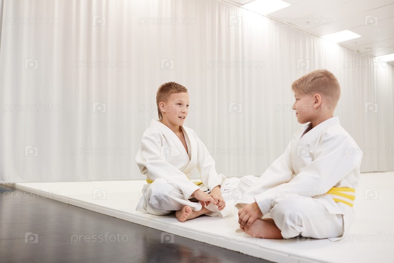 Два мальчика отдыхают после спортивной тренировки