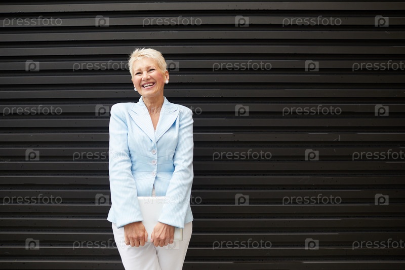 Счастливая зрелая бизнесвумен на открытом воздухе