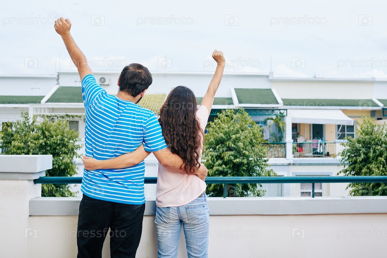 Пара празднует покупку нового дома