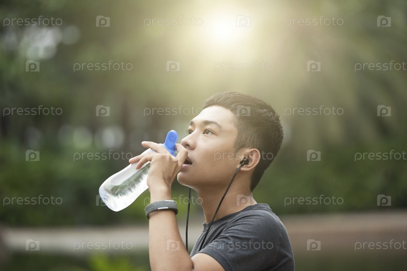Спортивный мужчина пьет воду