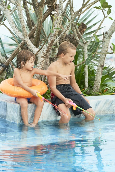 Дети играют в бассейне
