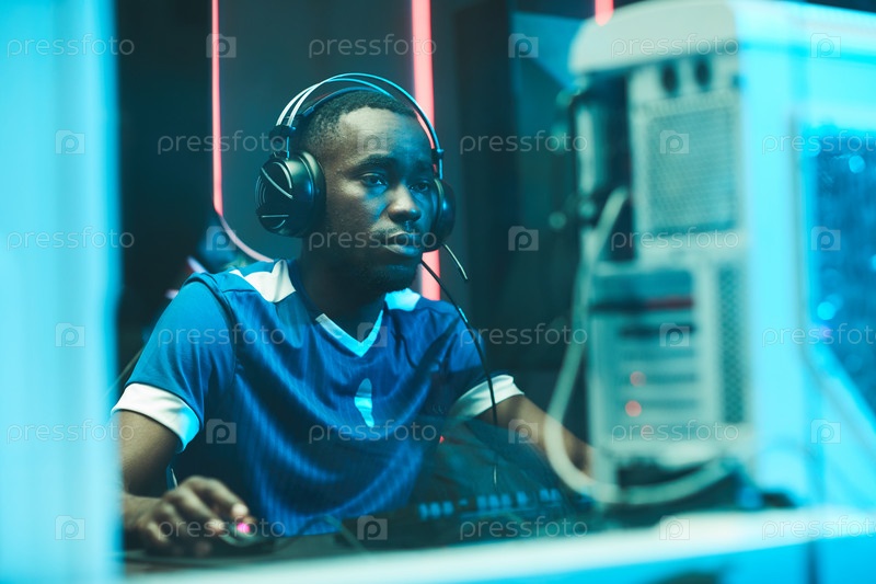 Молодой афроамериканский геймер играет в сетевую игру