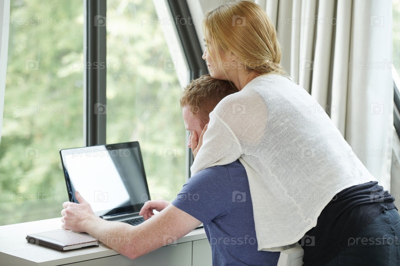 Красивая женщина обнимает бойфренда
