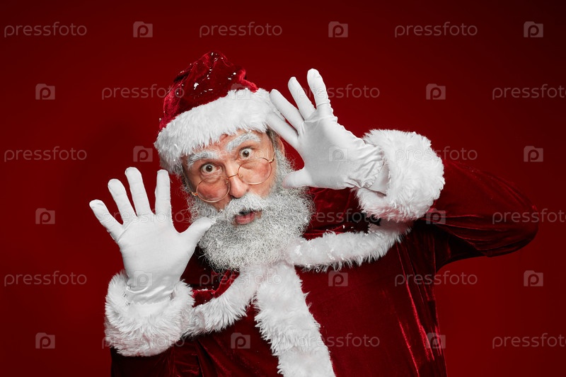 Санта Клаус делает лица против Красного