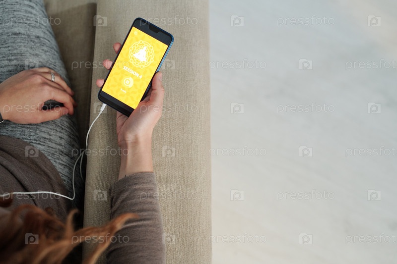 Обзор человеческой руки, держащей смартфон во время просмотра видео
