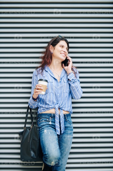 Веселая женщина, разговаривающая по телефону