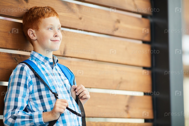 Школьник с рюкзаком стоит на улице