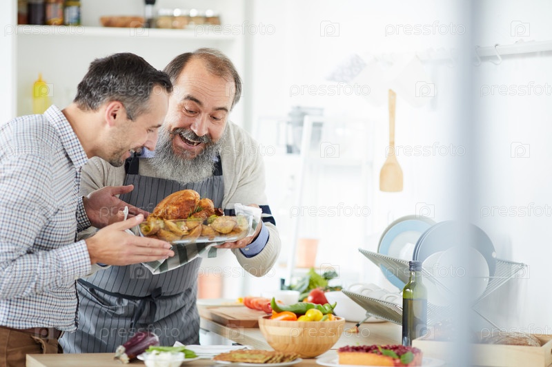Мужчины готовят жареную индейку