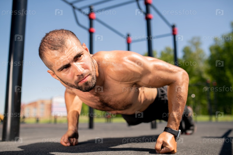 Бодибилдер на спортивной площадке