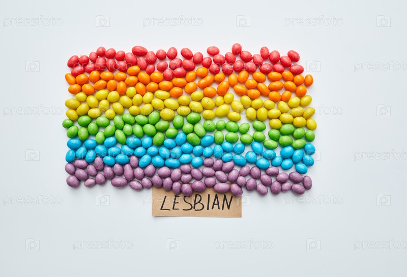 Лесбийский красочный флаг: небольшие желе различных цветов, выложенные в форме флага, посвященного лесбиянкам