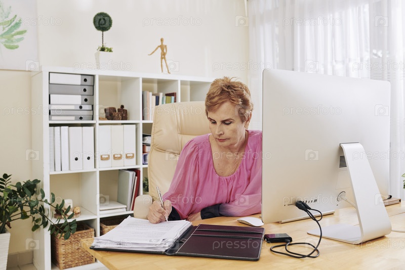 Старшая бизнес-женщина, подписывающая документы