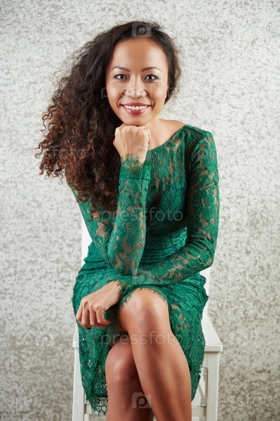 Красивая женщина в зеленом платье