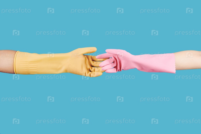 Люди, протягивающие перчаточные руки